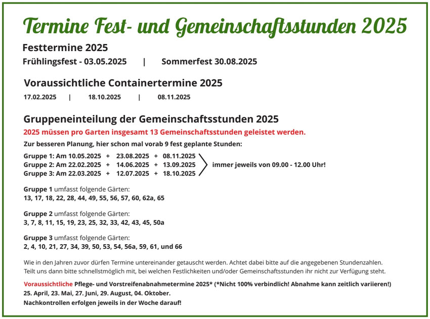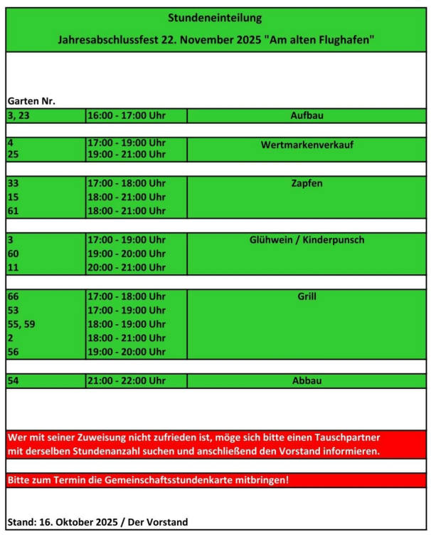 Auch an dieser Stelle vorab nochmal der Hinweis, dass diese Liste spätestens am Samstag auch in den Schaukästen ausgehängt wird!